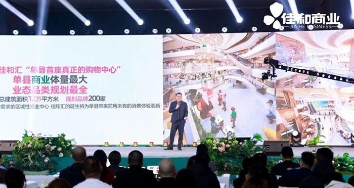 在项目推介环节,佳和商业(菏泽区域)总经理贾蒙以“扎根菏泽烟火、焕新全域美好”为核心蓝图,回溯佳和城深耕菏泽商业带来的全新起点,并顺势揭晓两大备受期待的商业项目,以差异化定位构建覆盖城市与县域的商业矩阵。